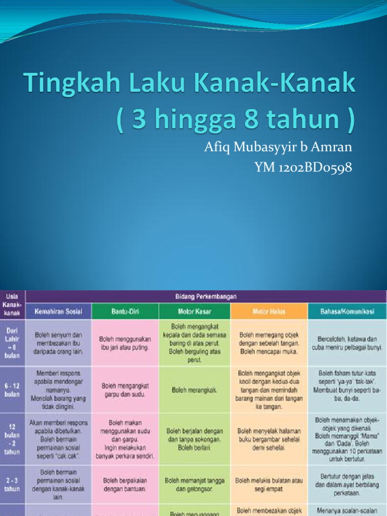 Tingkah Laku Kanak Kanak 3 Hingga 8 Tahun Pdf